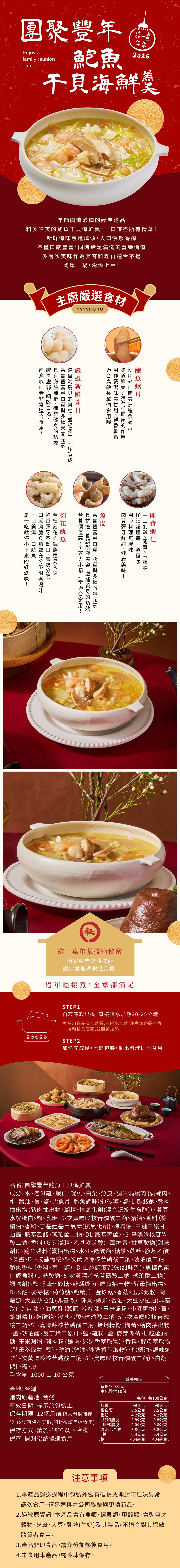 ❄團聚豐年鮑魚干貝海鮮羹(1000g,約4-6人份)(2026這一桌年菜)